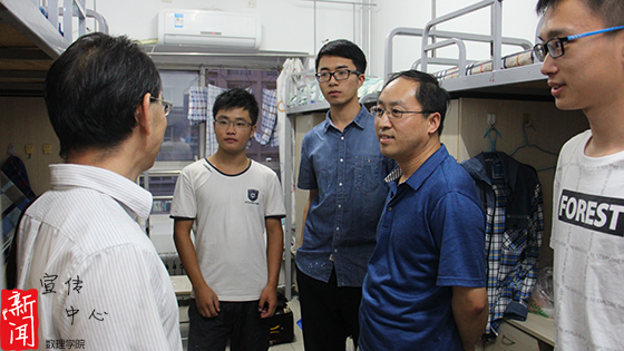 2016年8月28日晚七点,为对新生的到来表示欢迎以及促进师生之间的情感交流,bl动漫 院长王荣明、党委书记耿小红、党委副书记牛珩、bl动漫 各位任职教师以及辅导员前去2016级新生寝室进行探望。